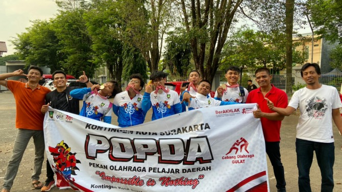 Pegulat Kota Solo mengikuti ajang Pekan Olahraga Pelajar Daerah (Popda) Provinsi Jawa Tengah di Semarang, belum lama ini (20-21/6/3023). Di ajang ini Solo mencatatkan diri sebagai juara umum 3 dengan raihan dua emas, satu perak, dan dua perunggu.