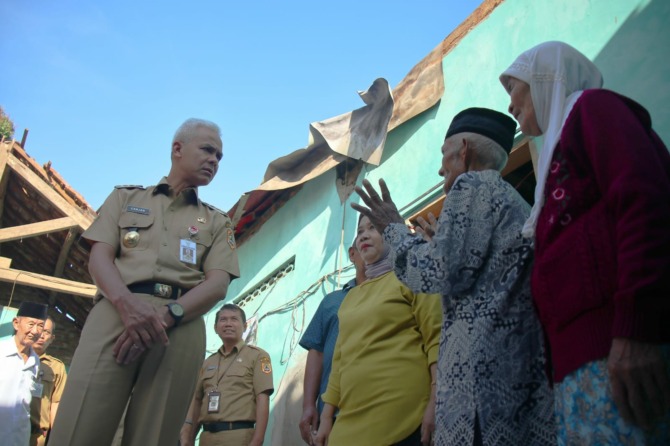 RADARWONOGIRI.COM-Gubernur Jateng Ganjar Pranowo mengecek sejumlah titik terdampak gempa Bantul di Kabupaten Wonogiri, Senin (3/7/2023). Gubernur memberikan atensi khusus terhadap sekolah yang terdampak gempa.
