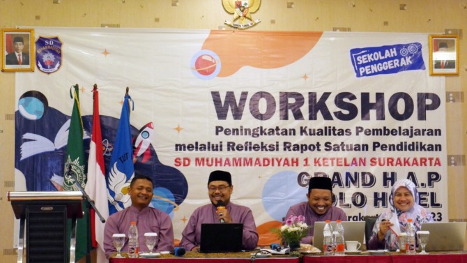 SD Muhammadiyah 1 Ketelan Kota Surakarta menyelenggarakan workshop peningkatan kualitas pembelajaran melalui refleksi rapot satuan pendidikan di Grand HAP Solo Hotel, Sabtu (1/7).